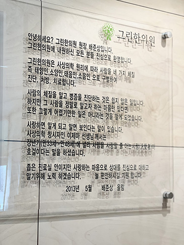 ※ 원활한 뜸 정리를 위해 진료시간 마감 20분 전에 뜸이 종료됩니다. 양해 부탁드립니다.